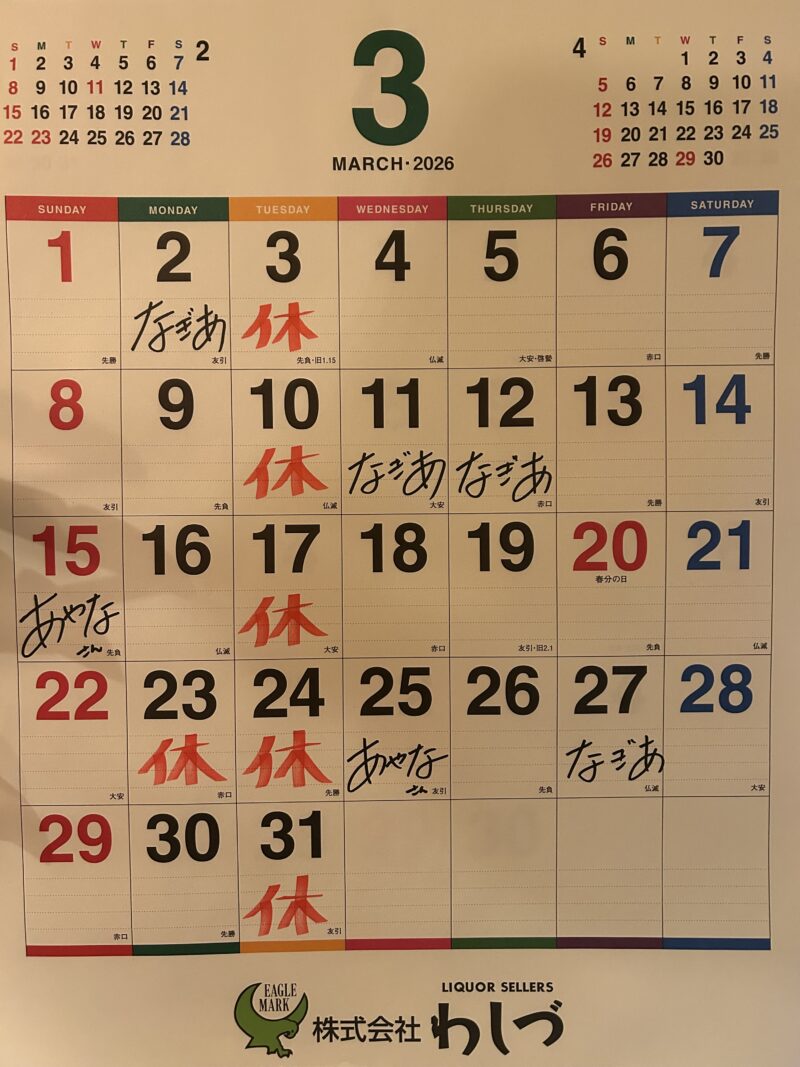 3月営業カレンダー