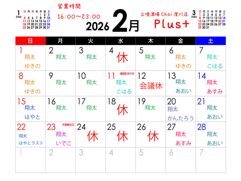 本日2/12(木)両店舗とも会議休み🎌