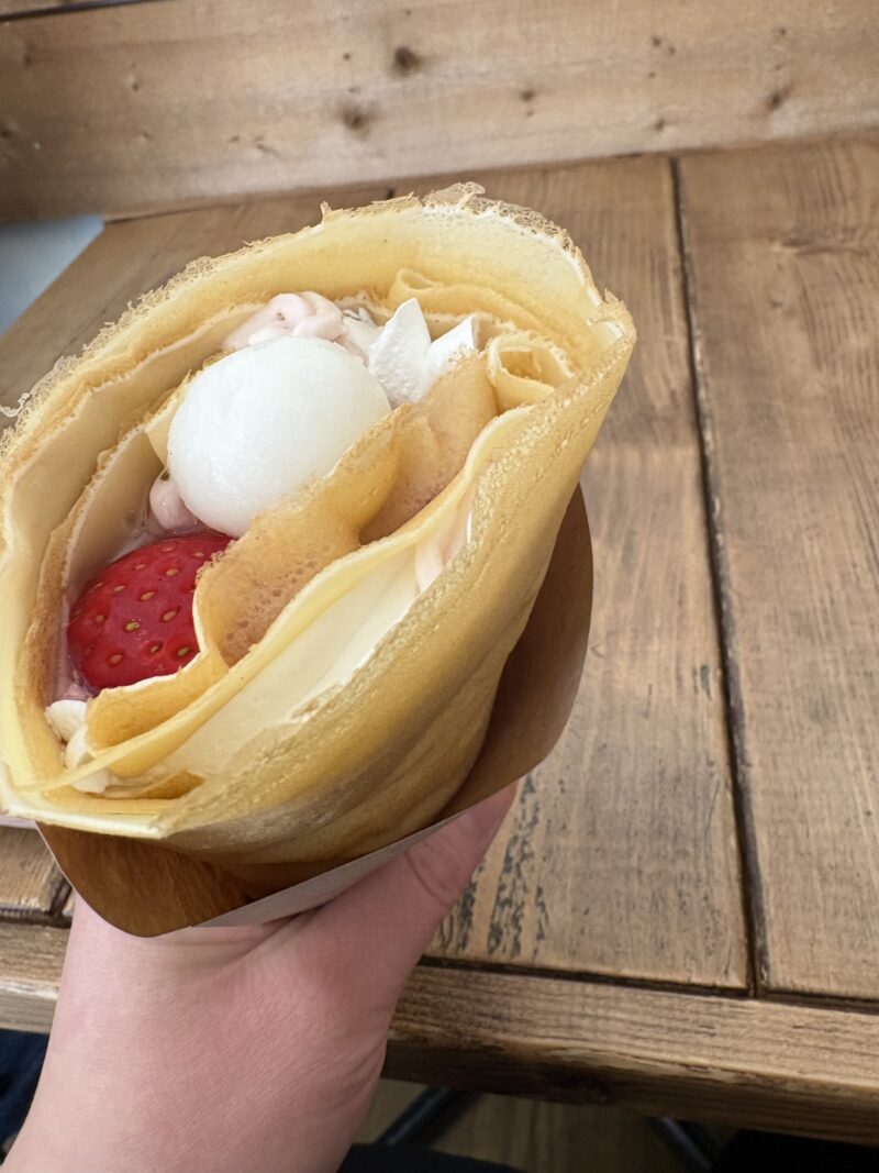 先日の桜ワッフルに続き、今日は桜と苺のクレープ!
