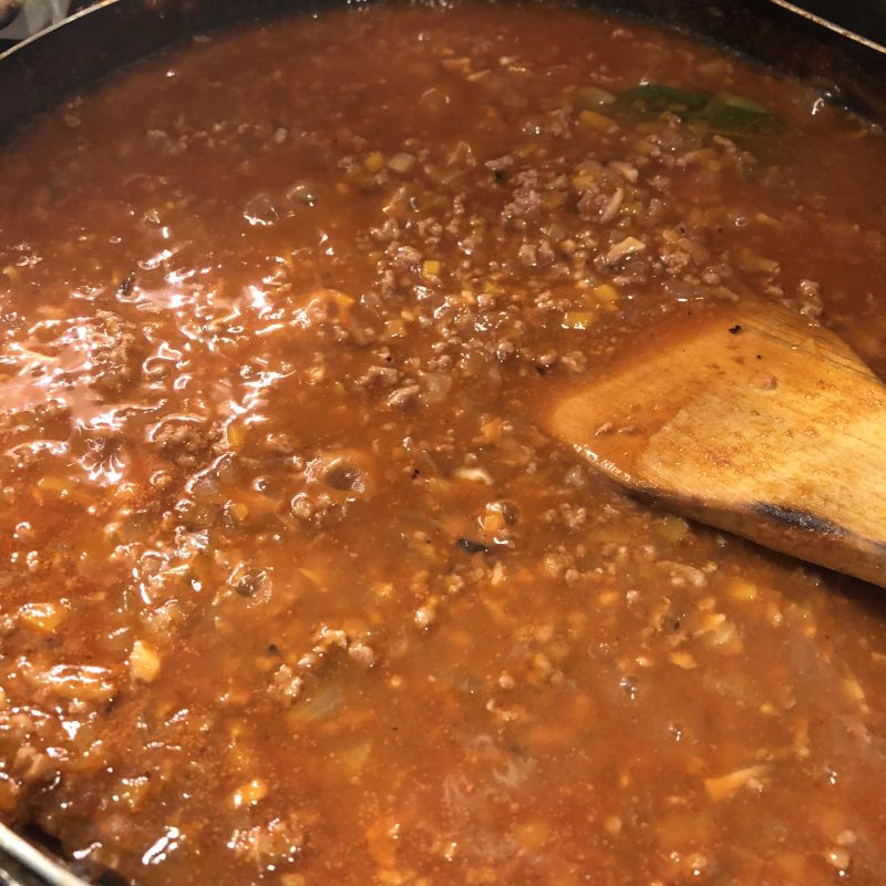 おでん出汁たっぷり入れてミートソースを仕込みました。