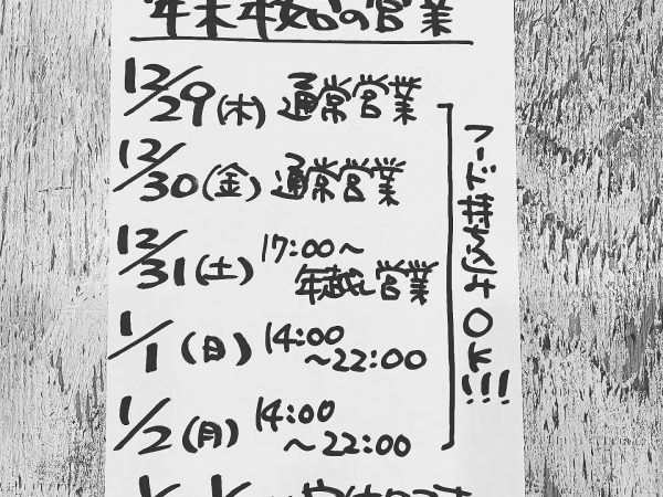 年末年始は休まず営業