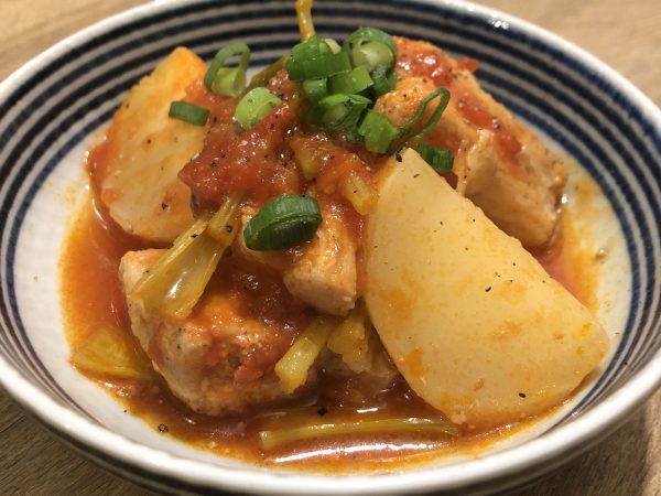 トマト煮で温まろう。